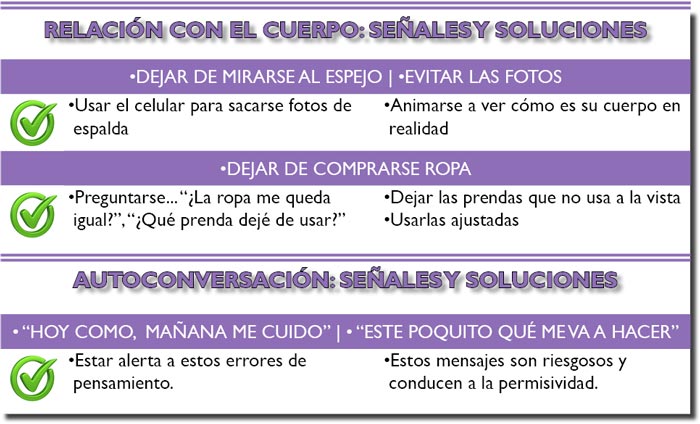 - Estar alerta para identificar las señales de posibles tropezones que te lleven a un aumento de peso.