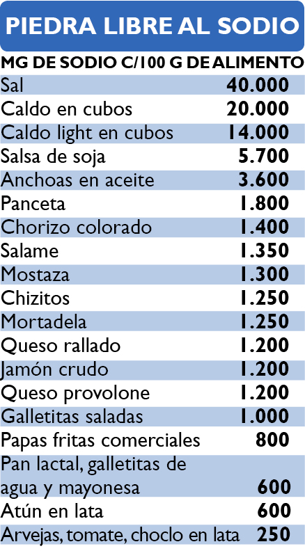 Nuestro cuerpo necesita ¼ de cdita. tamaño café de sal (1,25 g de sal = 0,5 g de sodio) para cumplir con las funciones corporales, aunque una ingesta de sal de hasta 5 g por día se considera aceptable. Sin embargo, se suele ingerir prácticamente el doble, y además del agregado de sal a las comidas, 65% a 70% aproximadamente del sodio consumido proviene de alimentos procesados o industrializados.